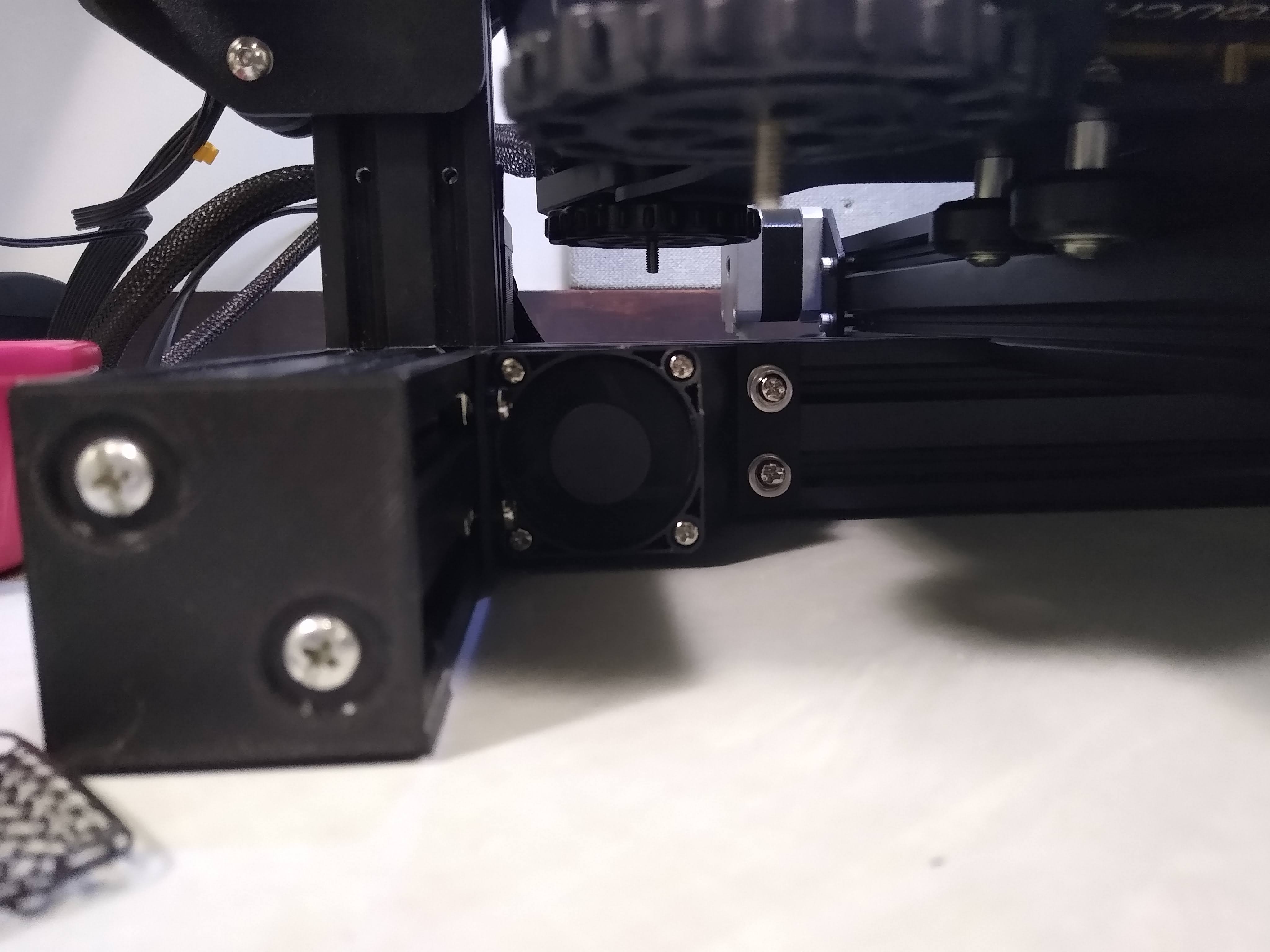It is worth noting that this case is not compatible with the screen cable going by its intended path. This design choice is because my screen is broken and was hardly used in favour of Octoprint anyway. Having the fan at the front puts the fan in a safer position while still offering cooling to the parts that need it.